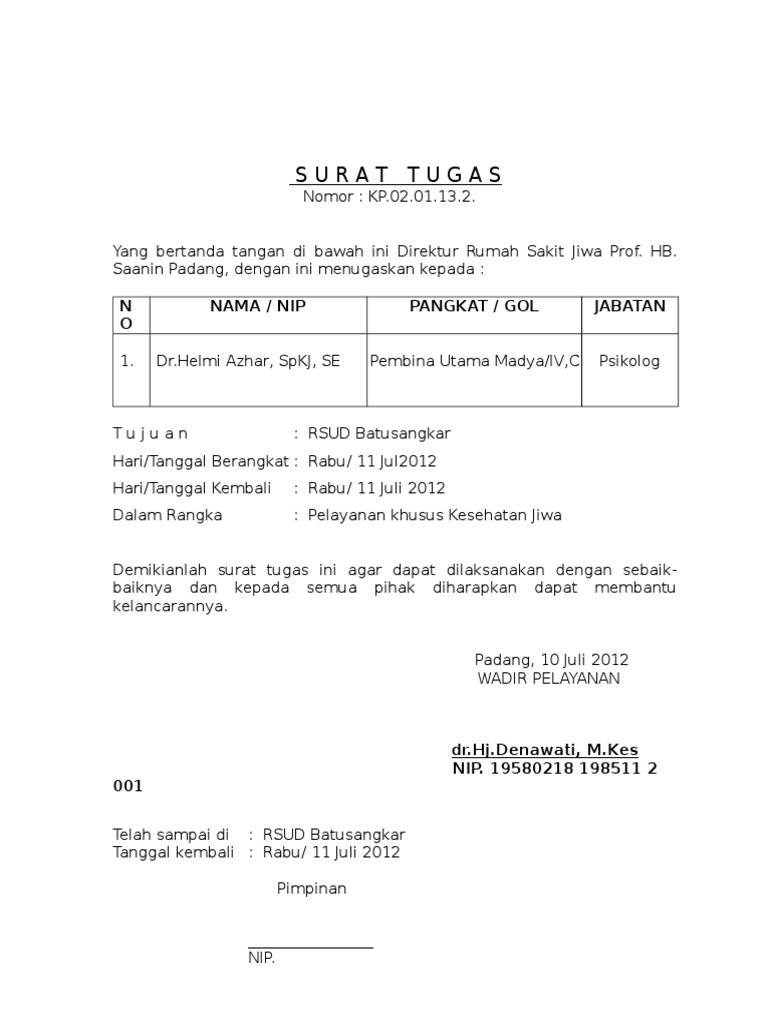 Surat tugas ini bisa diartikan sebagai surat yang dikeluarkan oleh instansi tertentu atau pihak yang lebih tinggi dan ditujukan kepada bawahannya untuk melaksanakan sebuah tugas. Namun terkadang penugasan harus dilakukan secara resmi, dimana tentunya mengunakan surat. Surat tugas karyawan adalah surat tugas yang diberikan oleh atasan kepada karyawan. Di bawah ini bisa anda lihat sendiri bahwa jabatan yang diemban oleh orang yang diberi tugas adalah kepala. Surat tugas atau yang disebut juga surat mandat merupakan surat yang isinya berupa perintah untuk mengerjakan suatu kegiatan. Disini kami akan bahas seputar surat tugas mulai dari pengertian hingga contoh surat tugas yang baik dan benar. Surat tugas biasanya akan dikeluarkan ketika ada salah satu karyawan dari perusahaan, lembaga pemerintahan atau instansi yang lainnya untuk menugaskan pekerjaan diluar kantor. Zainul azhari pk.pt ipnu unisla tertib administrasi, modal kemajuan organisasi. Surat tugas dapat dikelompokkan menjadi beberapa jenis berdasarkan tugas maupun instansi yang menerbitkan. Ipnu desa babadan dengan nomor limpung untuk mendapatkan surat pengesahan pimpinan cabang atas kepengurusan pr.ipnu. Berdasarkan catatan sejarah, kegiatan surat menyurat di indonesia telah dimulai jauh sebelum. Contoh surat tugas yang benar. Pengertian surat tugas seperti kita tahu dalam dunia kerja banyak sekali.