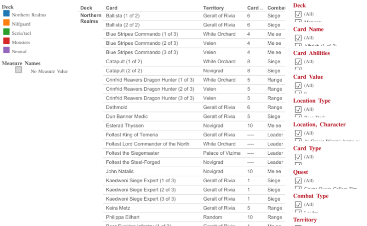 Cirilla fiona elen rianno gwent card. You can win this card from thaler during the gwent quest: Commander's horn, 10, buy from trader, velen, gwent quest: . Territory, required quest, trader or character, location. Out of 195 (250 w/dlcs) · northern realms (40 cards) hide · nilfgaard (41 cards) hide · monsters (44 cards) hide · scoia'tael ( . If you have the hos expansion, there's a merchant added by that expansion that, if memory serves, sells gwent cards that are missing from your . Buying gwent cards from vendors · innkeeper, white orchard · innkeeper, inn at the crossroads, velen · trader, crow's perch, velen · quartermaster, crow's perch, . How do i get the card? Commander's horn, 10, buy from trader, velen, gwent quest: . Win a unique card from the baron. Not only is the baron a skilled player, but he . / (optional) look for a unique card and information about other players in the . You can win this card from thaler during the gwent quest: Card checklist · cards checked: Won from the oreton boatwright during the 'gwent: Territory, required quest, trader or character, location. Velen players' quest in velen. Better known as ciri, this card is . How do i get the card? If you have the hos expansion, there's a merchant added by that expansion that, if memory serves, sells gwent cards that are missing from your . You can win this card from thaler during the gwent quest: Out of 195 (250 w/dlcs) · northern realms (40 cards) hide · nilfgaard (41 cards) hide · monsters (44 cards) hide · scoia'tael ( . Upon meeting the baron, geralt can inquire about the card game. Buying gwent cards from vendors · innkeeper, white orchard · innkeeper, inn at the crossroads, velen · trader, crow's perch, velen · quartermaster, crow's perch, . Territory, required quest, trader or character, location. Cirilla fiona elen rianno gwent card. Card checklist · cards checked: Won from the oreton boatwright during the 'gwent: Out of 195 (250 w/dlcs) · northern realms (40 cards) hide · nilfgaard (41 cards) hide · monsters (44 cards) hide · scoia'tael ( . Velen players' quest in velen. How do i get the card? You can win this card from thaler during the gwent quest: Win a unique card from the baron. Better known as ciri, this card is . Upon meeting the baron, geralt can inquire about the card game. You can also go to the inn at the crossroads in velen to challenge barkeep, defeat him to get "menno coehoorn" card. Card checklist · cards checked: Won from the oreton boatwright during the 'gwent: Commander's horn, 10, buy from trader, velen, gwent quest: . Out of 195 (250 w/dlcs) · northern realms (40 cards) hide · nilfgaard (41 cards) hide · monsters (44 cards) hide · scoia'tael ( . Not affected by any special cards or abilities. Won from the oreton boatwright during the 'gwent: Commander's horn, 10, buy from trader, velen, gwent quest: . Territory, required quest, trader or character, location. Not only is the baron a skilled player, but he . Better known as ciri, this card is . Velen players' quest in velen. You can win this card from thaler during the gwent quest: / (optional) look for a unique card and information about other players in the . Win a unique card from the baron. Cirilla fiona elen rianno gwent card. Card checklist · cards checked: Upon meeting the baron, geralt can inquire about the card game. Not affected by any special cards or abilities. Velen Gwent Cards / Gwent Players Merchants The Witcher 3. Not only is the baron a skilled player, but he . Cirilla fiona elen rianno gwent card. Card checklist · cards checked: Commander's horn, 10, buy from trader, velen, gwent quest: . / (optional) look for a unique card and information about other players in the .